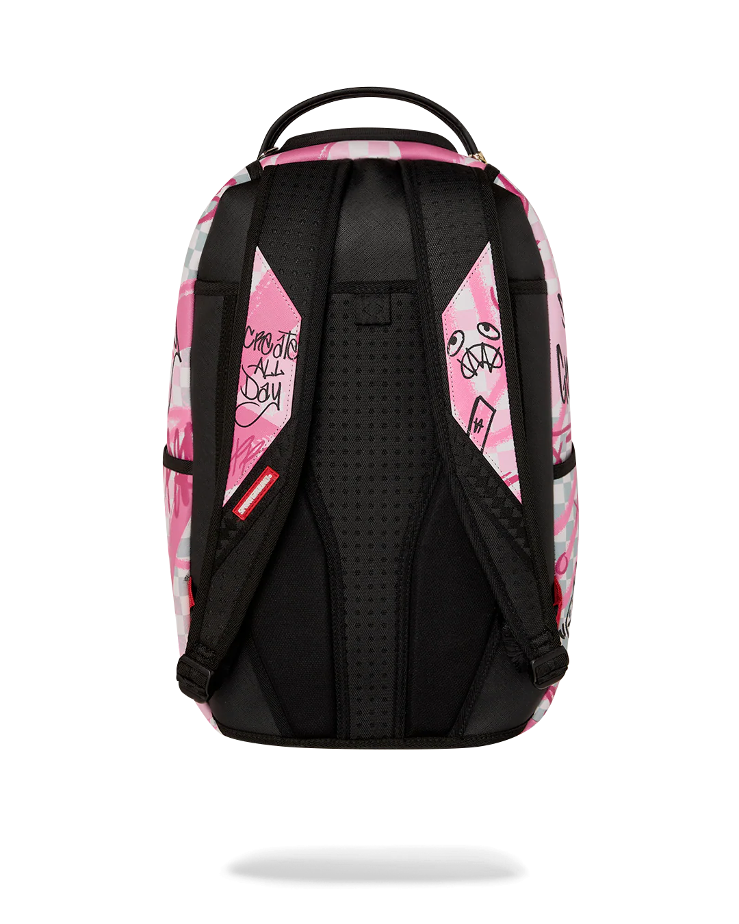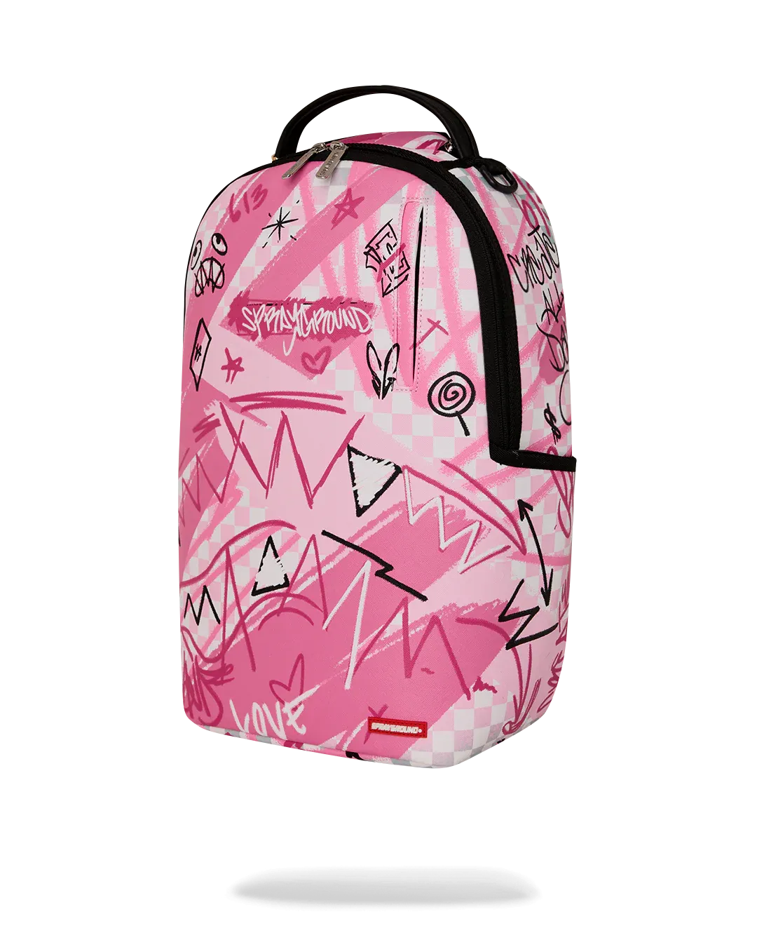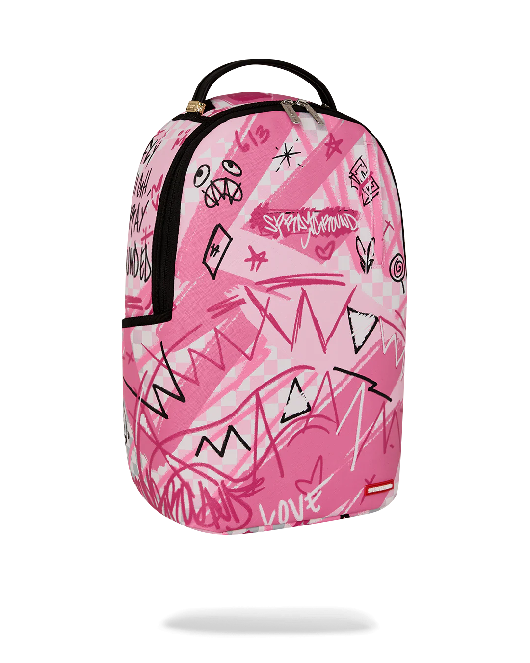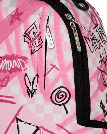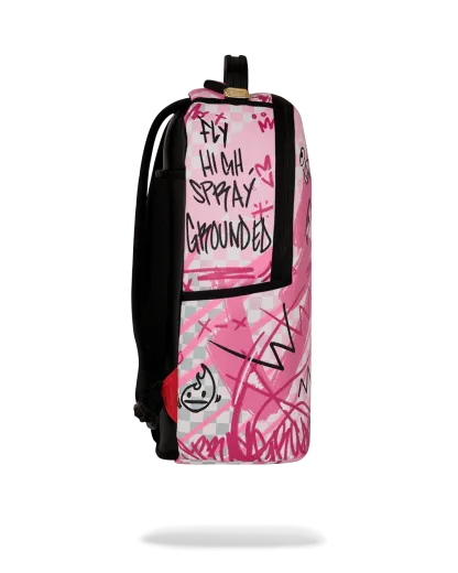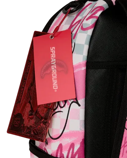 Dimensions: 18" x 6" x 11.5" • Front zipper pocket • Side pockets • Zippered Stash pocket • Separate velour sunglass compartment • Ergonomic mesh back padding • Adjustable Straps for custom sizing • Gold zippers with metal hardware • Metal "Sprayground Authentic" badge • Slide through back sleeve connects to carry-on luggage to free your hands