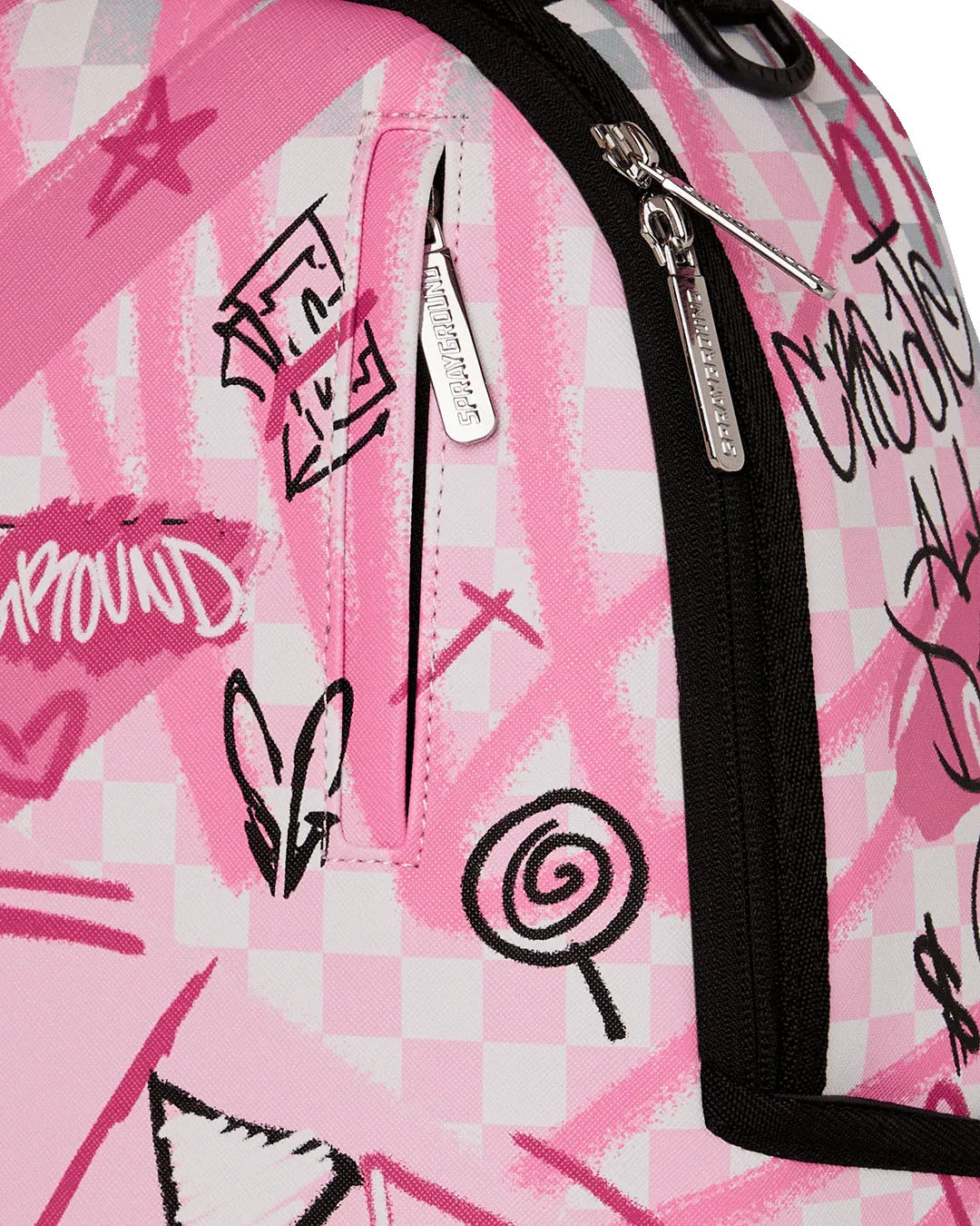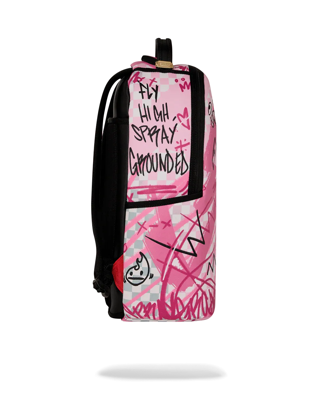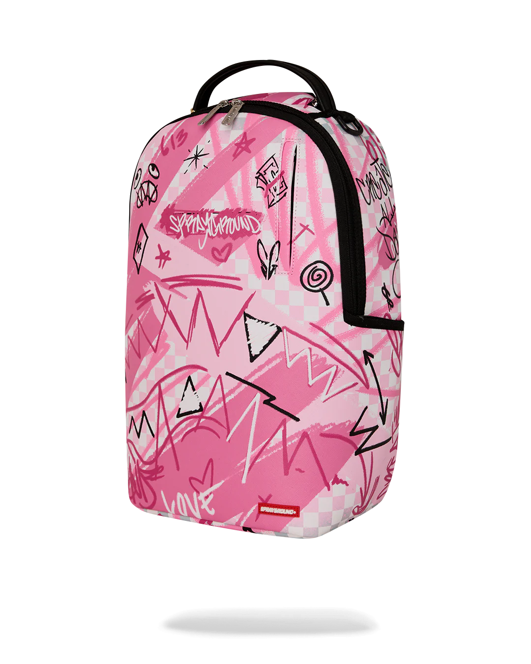 Dimensions: 18" x 6" x 11.5" • Front zipper pocket • Side pockets • Zippered Stash pocket • Separate velour sunglass compartment • Ergonomic mesh back padding • Adjustable Straps for custom sizing • Gold zippers with metal hardware • Metal "Sprayground Authentic" badge • Slide through back sleeve connects to carry-on luggage to free your hands