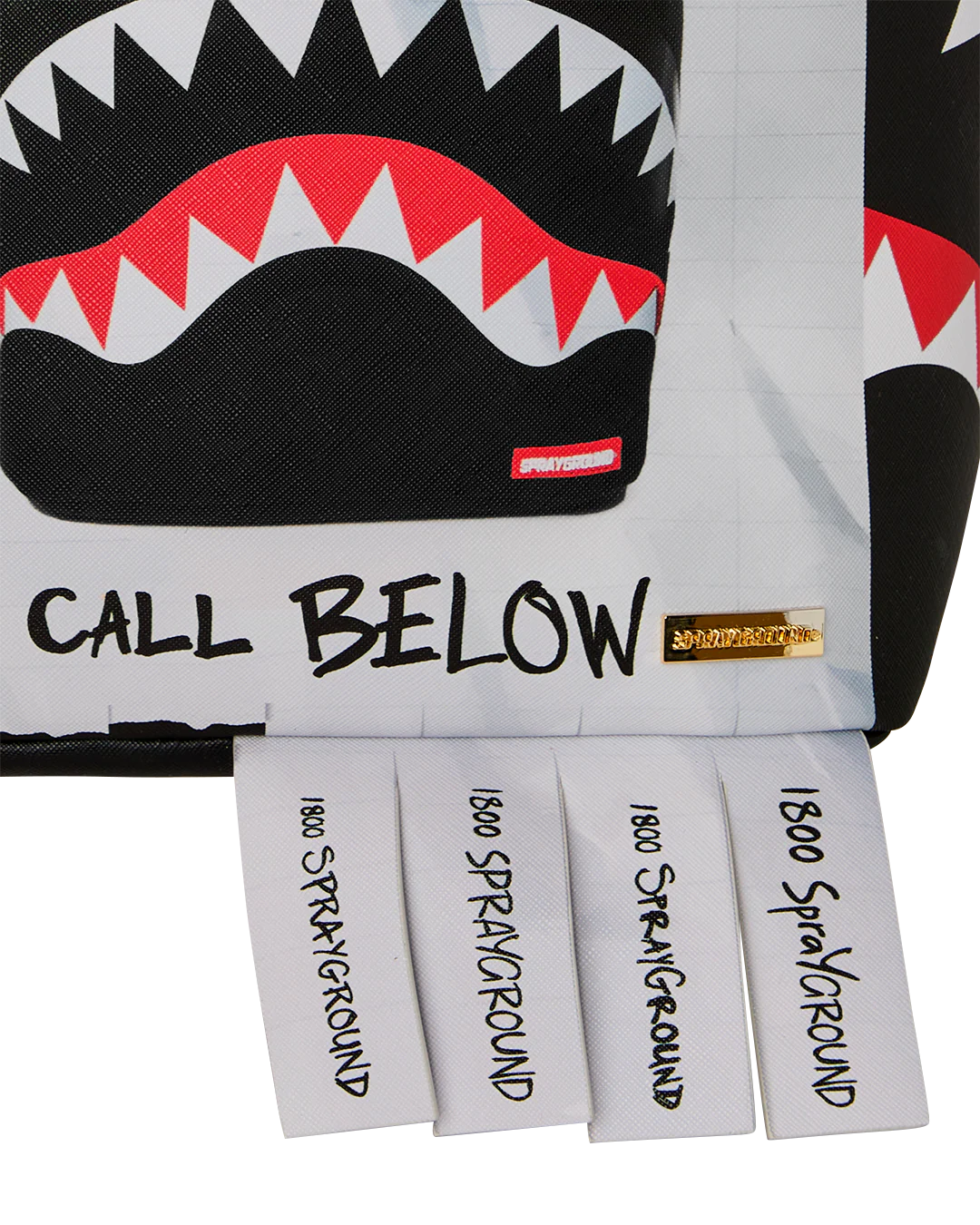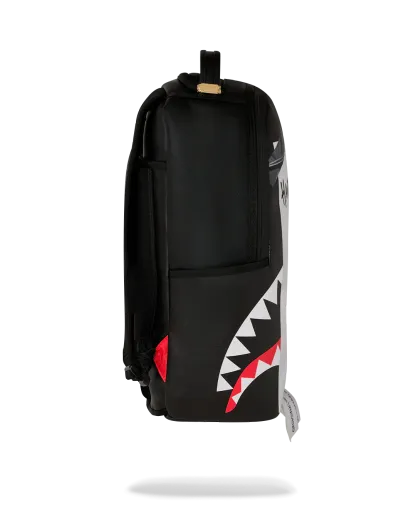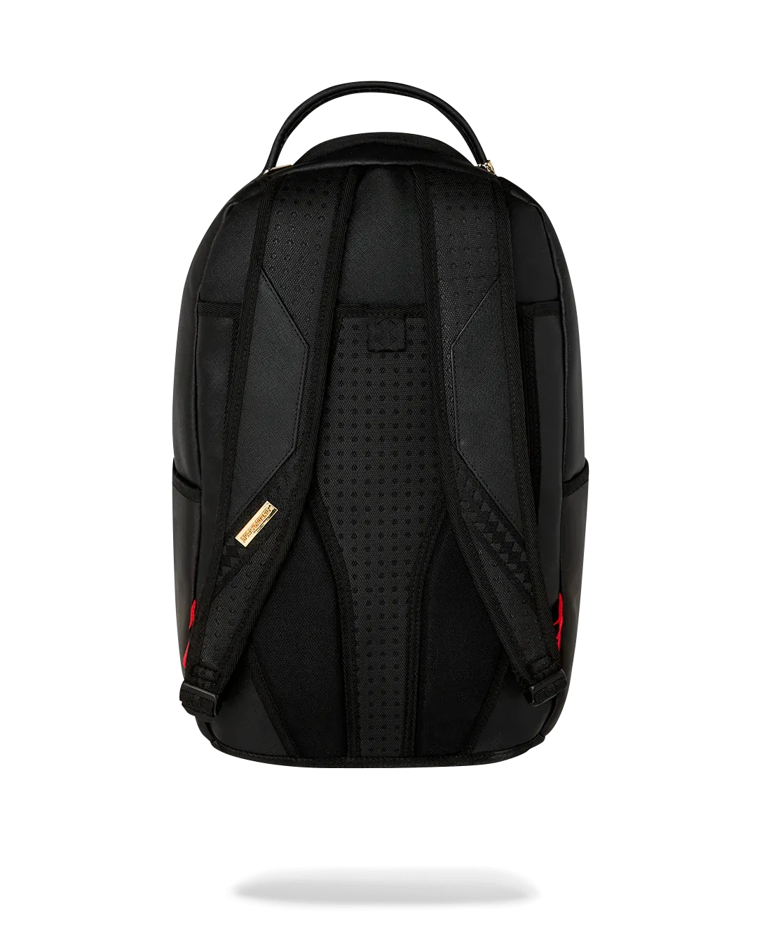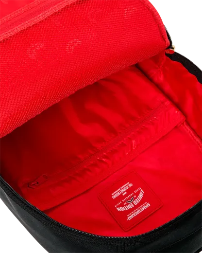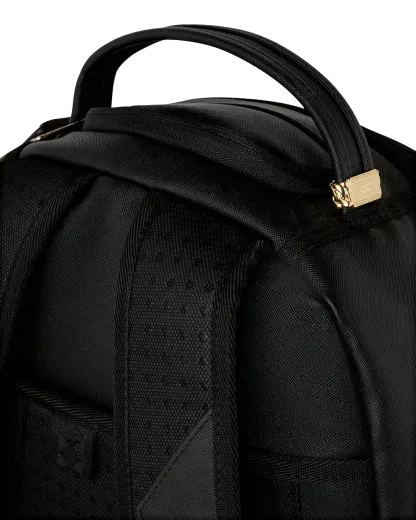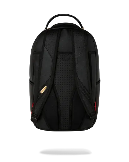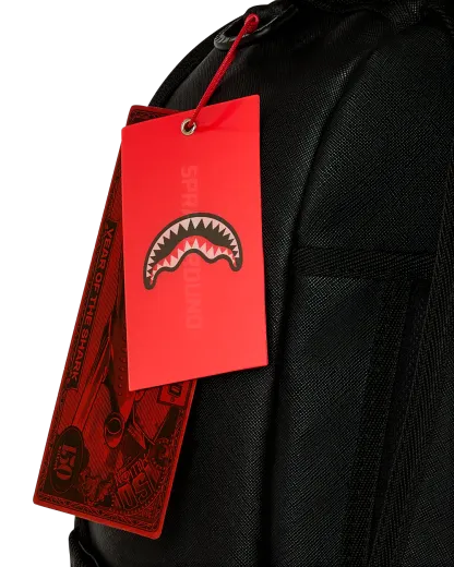 Dimensions: 18" x 6" x 11.5" • Front zipper pocket • Side pockets • Zippered Stash pocket • Separate velour sunglass compartment • Ergonomic mesh back padding • Adjustable Straps for custom sizing • Gold zippers with metal hardware • Metal "Sprayground Authentic" badge • Slide through back sleeve connects to carry-on luggage to free your hands