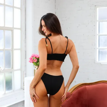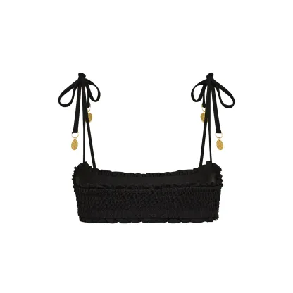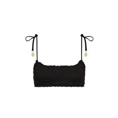 Shirred Crop Tie Bikini Top - Twilight Black